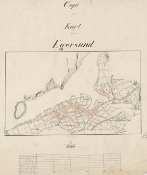 I 1857 ble det for første gang laget et bykart over Egersund for å framskaffe et kartgrunnlag til bruk for å utarbeide en plan for hele byens område, Reguleringsplan 1858. Kartet, som er håndtegnet og i målestokk 1:5000, er utarbeidet av Captein Tausen, og viser eksisterende bebyggelse innenfor bygrensa det året kartet ble tatt opp samt navn på mange av de nærmeste ubebygde områdene.1)