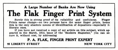 Etter hvert ble Peter Arnfinn regnet som både pioner og en av de største autoritetene innen fingeravtrykk i USA, og han startet da sitt eget firma i New York; Flak Finger Print System Co. Gjennom dette selskapet ble fingeravtrykkssystemet hans spredd til statlige byråer, politiet, og svært mange banker i USA hvor fingeravtrykk ble brukt som sikker identifisering av bankkunder, ikke minst av de bankkundene som ikke kunne lese eller skrive. I Dagbladet 29. juni 1912 kunne man lese at «[…] det skyldes initiativet av en nordmand, hr. P. A. Flak fra Egersund, at amerikanske bankinstituter er begyndt at anvende fingeravtryk til sikring mot bedrageri ved falsk underskrift.»18) I 1913 hadde 82 banker i New York innført hans system. Resten av østkysten av USA var på dette tidspunktet også godt dekket, og han måtte ansette ytterligere personell for å kunne betjene alle forespørslene som kom fra vestlige deler av landet.19)