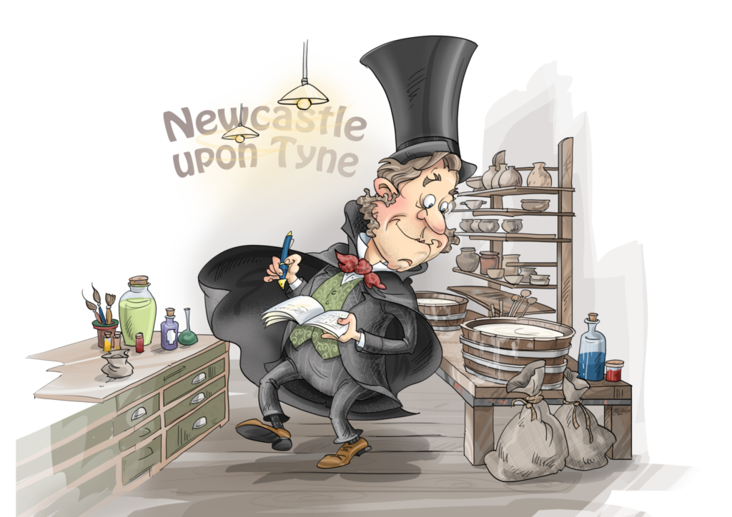 Det var mye Johan Feyer måtte lære før han kunne starte sitt eget potteri. Derfor reiste han til et sted hvor det var mange potterier han kunne studere og lære av. Turen gikk til Newcastle i England.