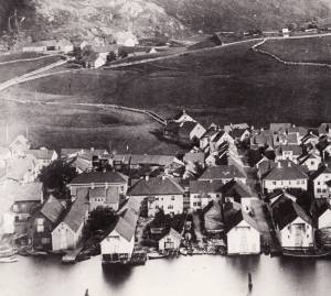 Aarstadgaten og Årstadræget. Gården Årstad øverst i venstre hjørne. Ca. 1890. Foto: E. H. Torjusen/DF