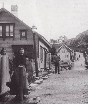 De som ikke hadde innlagt vann i huset kunne tappe i offentlige vannposter som her i Gamleveien. Foto: P. A. Flak/DF (Utsnitt)