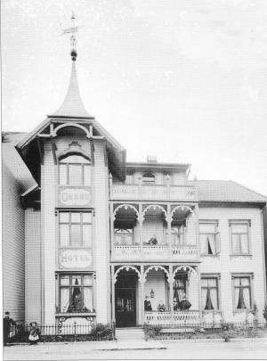 Grand Hotels første bygg, bygget på branntomta til Hotel Jæderen. Cirka 1897. Foto: E. H. Torjusen/DF