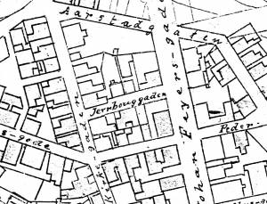 Gate mellom Johan Feyers gate og Kirkegaten, navnsatt i 1905.
