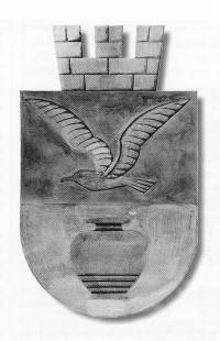 I januar 1937 ble det bevilget 50 kr til arbeidet med å få laget et byvåpen for ladestedet. Av 11 innkomne forslag samlet bedømmelseskomiteen seg om et utkast fra Alf Feyling Larsen, der motivet var todelt: en flygende måke og en fayansevase. Utkastet ble bearbeidet etter de heraldiske kravene til et byvåpen, men da det kan være vanskelig å kombinere disse kravene med ekte bypatriotisme fortok entusiasmen seg. Av flere grunner ble saken i realiteten lagt på is og deretter innhentet av begivenhetene i 1940.1)