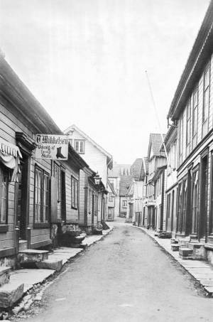 Nedre del av Kirkegaten, Kraksasmauet. Foto: P. A. Flak/DF