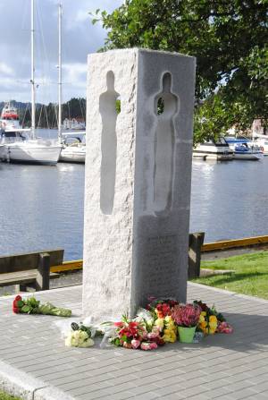 Minnesmerket over ofrene fra 22. juli 2012 står ved Lundeånes utløp. Foto: Per Einar Lædre