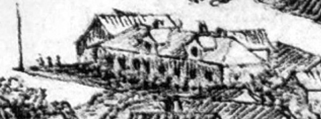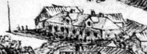 Nesgård sett fra Varberg, skisse av Jonas Nicolai Prahm i 1853, året før ombyggingen i 1854.