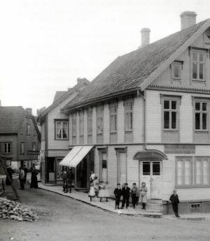 Samlaget hadde butikk i Storgaten 42. Foto: P. A. Flak/DF